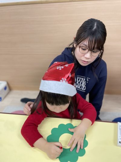 続いて 親子でいっしょに「クリスマスリースの製作」