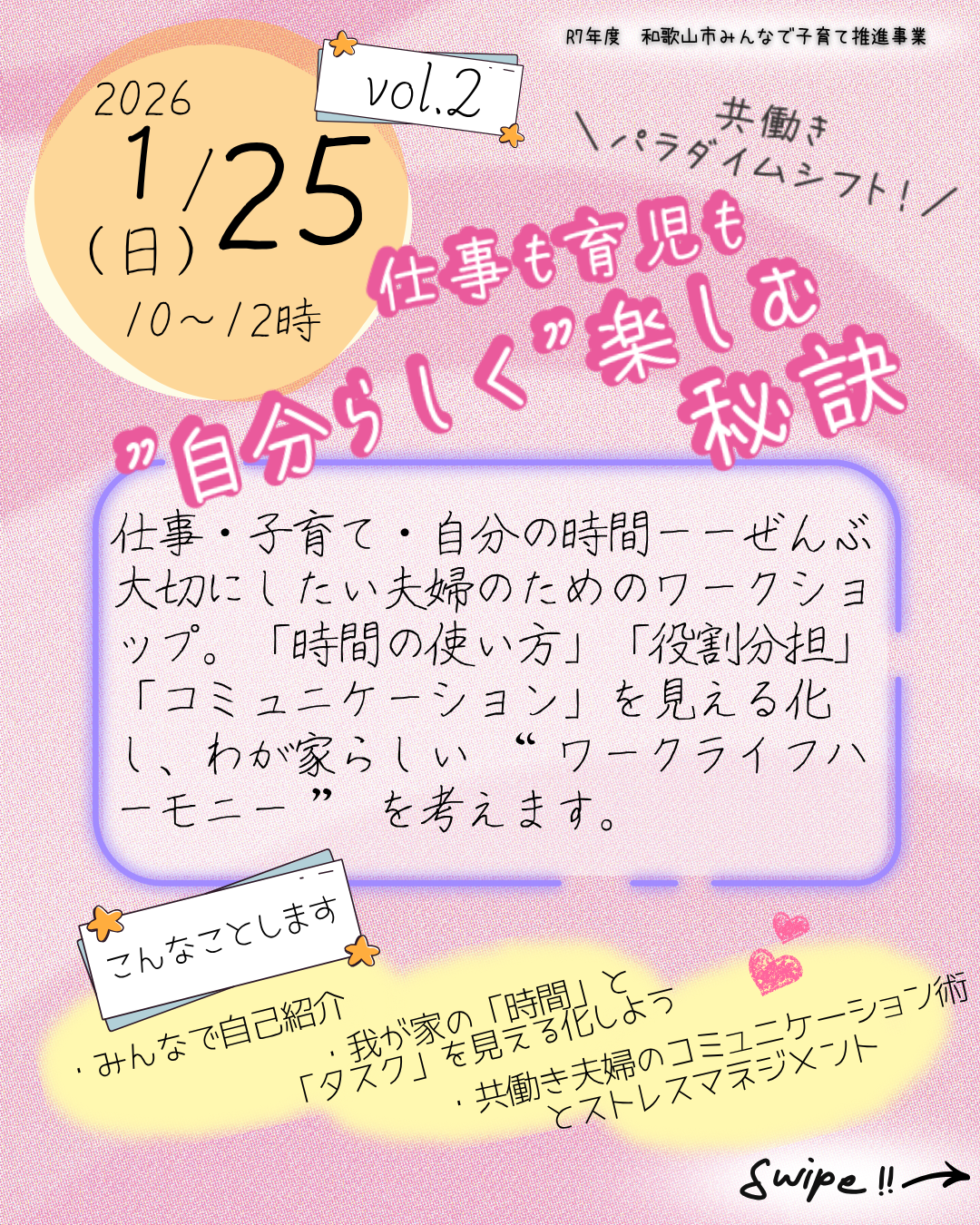 仕事・子育て・自分の時間ぜんぶ大切にしたい夫婦のためのワークショップです。
