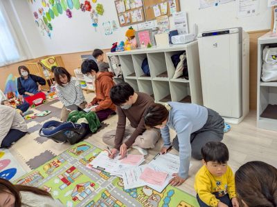当日はお子さまと一緒に参加していただき、見守り保育をさせていただきました。