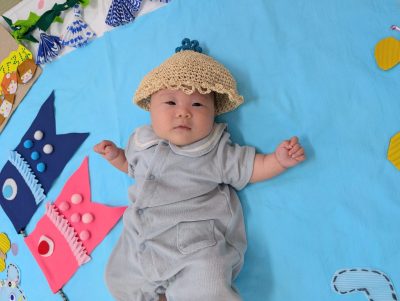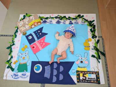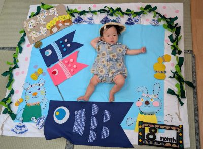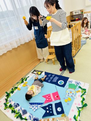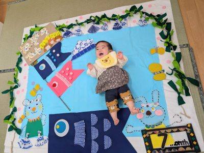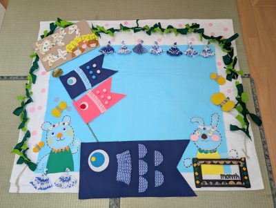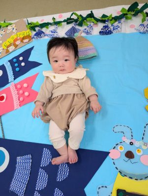 ドレミひろばの室内にスタッフ手作りのあかちゃん用のフォトスポットが登場しました~~🎏