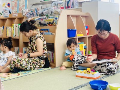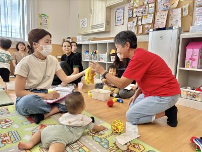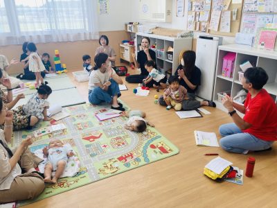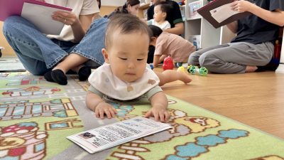 子どもはお話の最中お母さんのそばで玩具で遊ぶなどしていました。