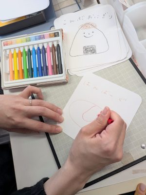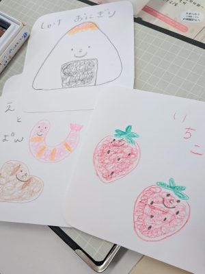 受付で、好きなお弁当の具材を聞いて、描いていくよー!!