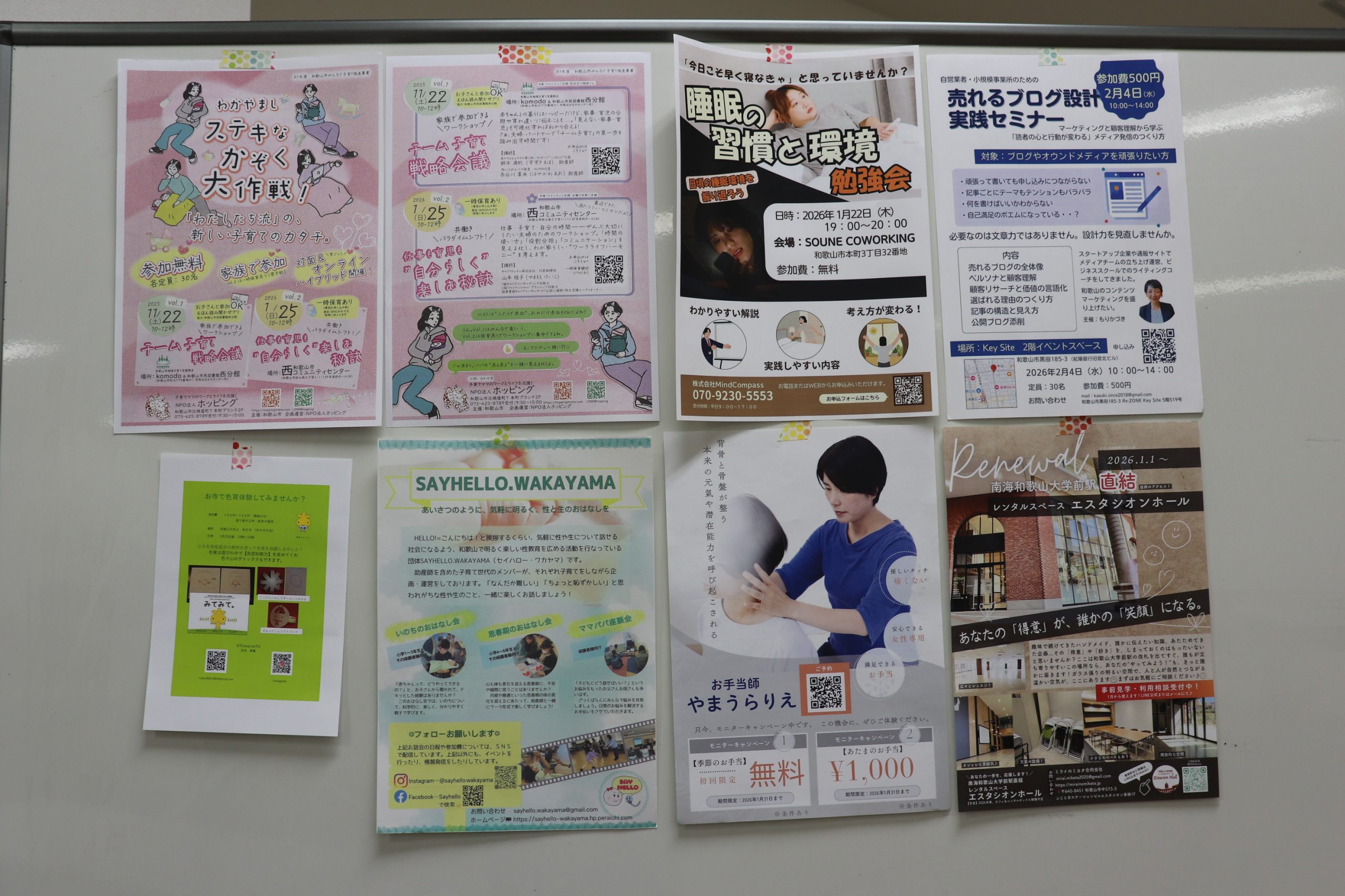 活動チラシ、交流会中貼っています