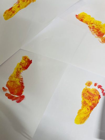 最初にとった可愛い👣足形を使ったkomodo特製お誕生日カードを作りま~す♪