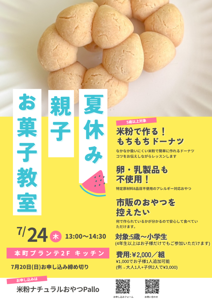 キッチンスペースにて 夏休み親子お菓子&料理教室も同時開催!
