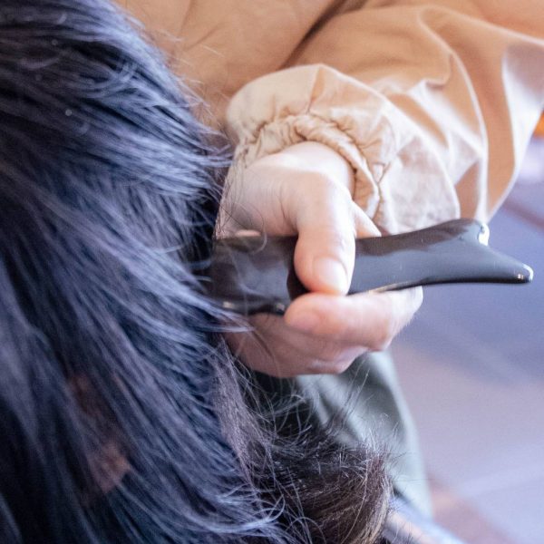疲れ目、肩こり・首こり、ストレスなどでお疲れのあたまをかっさプレートでほぐして流します。