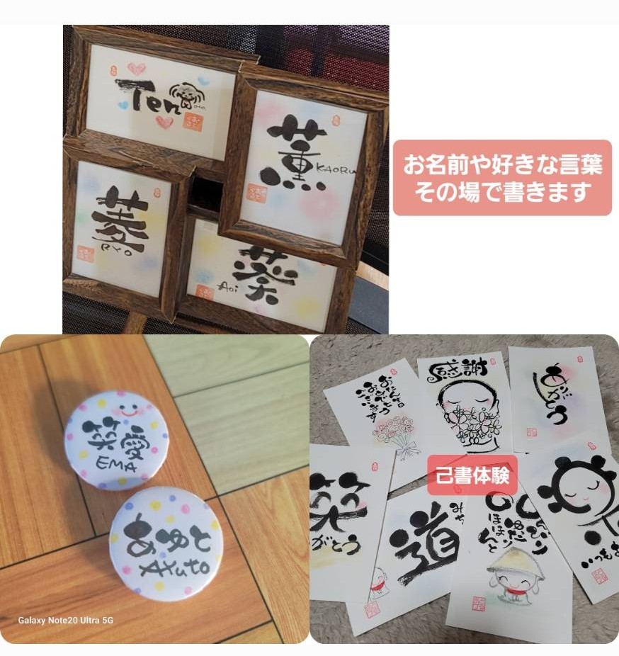 こちらでお書きすることもできます。オリジナルの缶バッチ製作は大人気です。