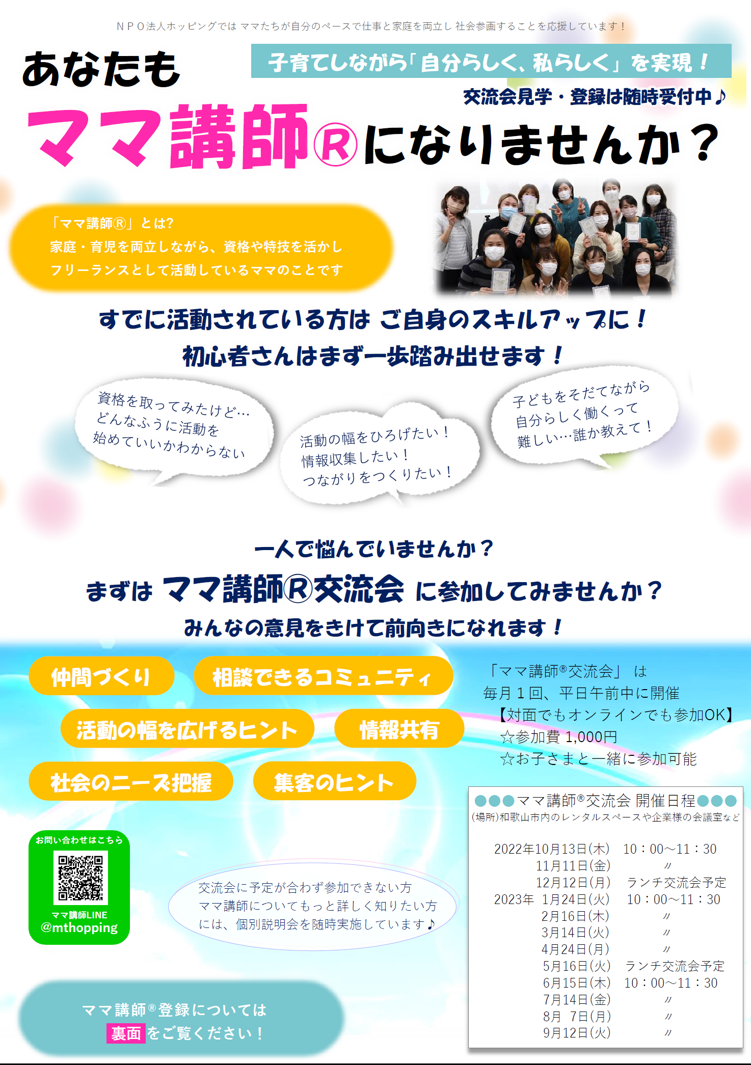 @mthopping宛てにメッセージで送ってください。件名:「ママ講師®交流会に参加希望」